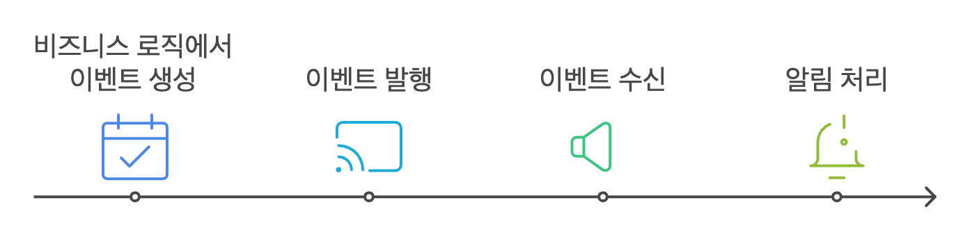 - 알림이 필요한 비즈니스 로직에서 `NotificationEvent`를 발행합니다.
