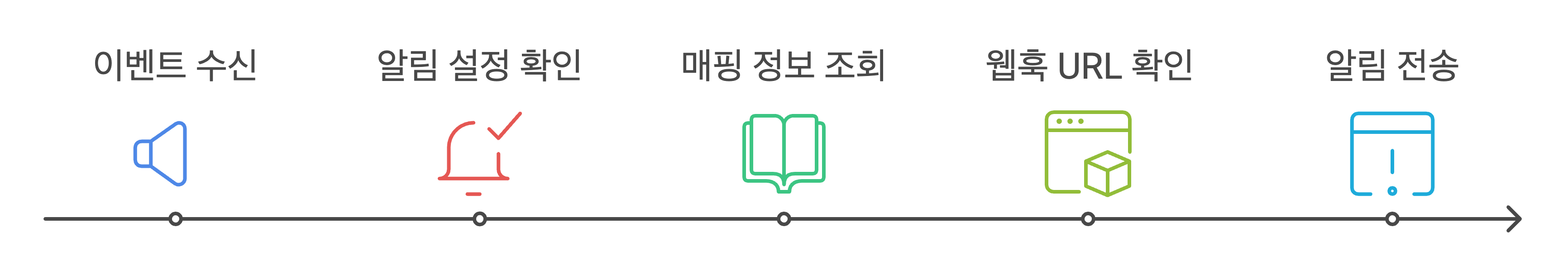 기존의 시스템은 슬랙에만 특화된 웹훅 시스템으로 구성되어 있었으며, 아래와 같은 방식으로 동작했습니다.