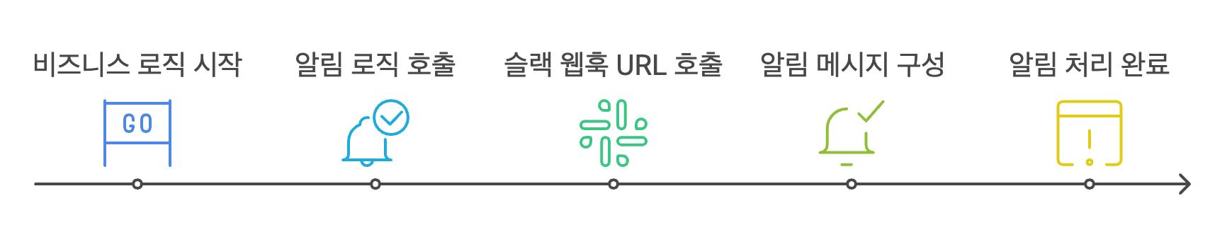 - 알림이 필요한 비즈니스 로직에서 슬랙 웹훅 서비스를 직접 호출합니다.
