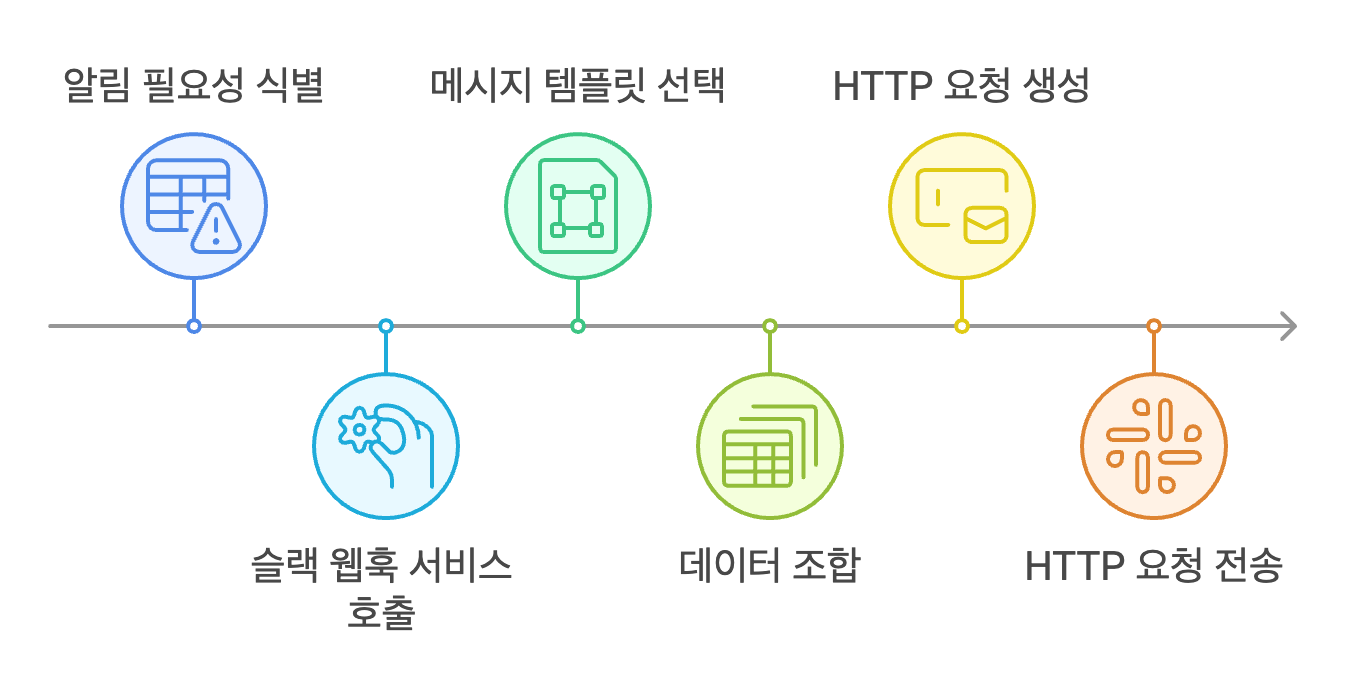 - 전달받은 데이터를 기반으로 사전에 설정된 슬랙 웹훅 URL로 HTTP POST 요청을 통해 알림을 전송합니다.
